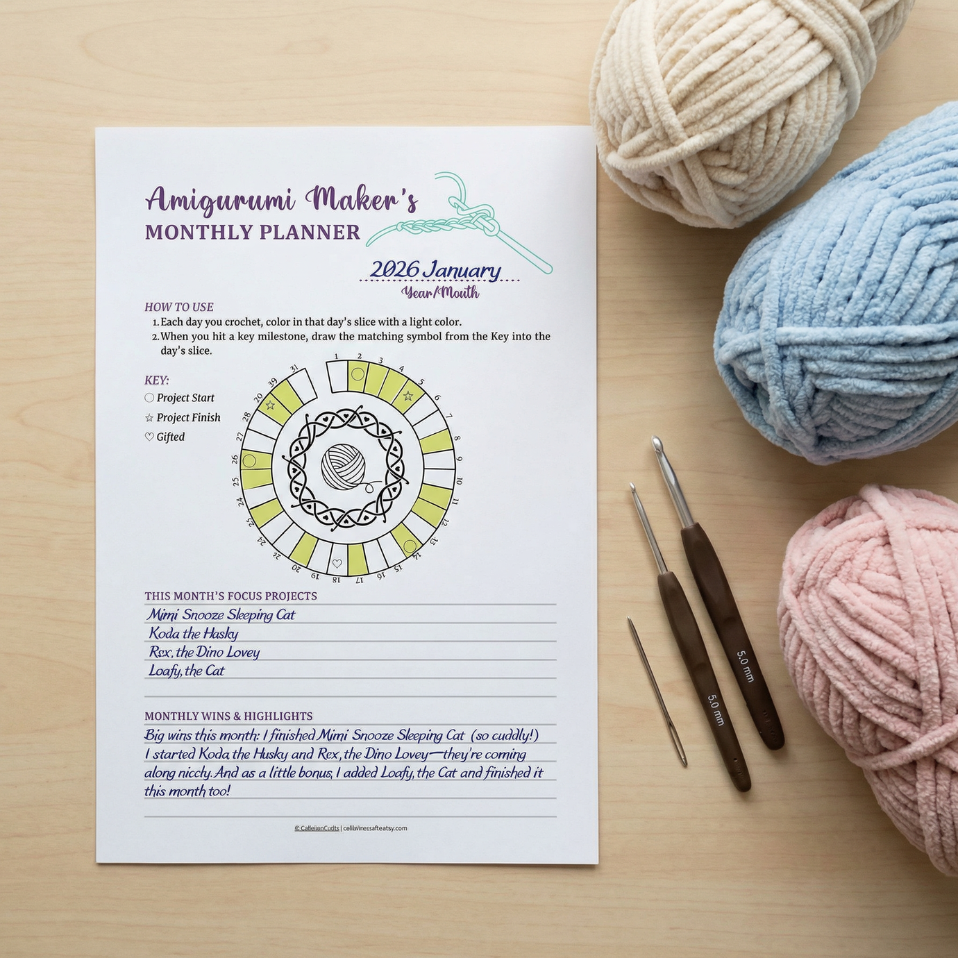 A gentle reminder to make space for yourself — even if it’s just 15 quiet minutes. This planner helps you protect that cozy crochet time and enjoy the making.